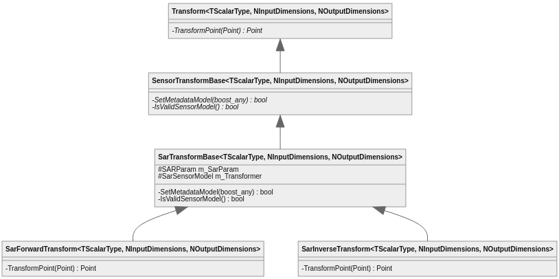 SetMetadataModelthat takes aboost::anyobject representing the model;IsValidSensorModelthat returns true if the model is correctly set;TransformPointthat process the transformation.
