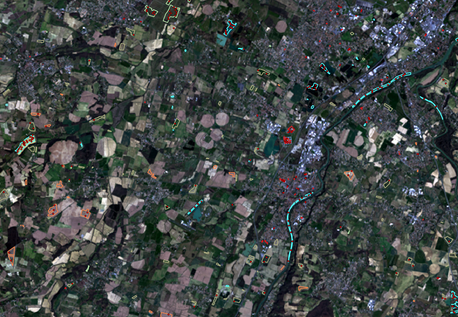 As an example of the FusionOfClassifications application by Dempster Shafer, the fusion of the six input classification maps represented in Figure3 leads to the classification map illustrated on the right in Figure5. Thus, it appears that this fusion gives access to a more precise and robust classification map based on the confidence level in each classifier.