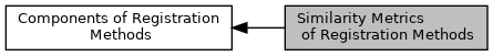Collaboration diagram for Similarity Metrics of Registration Methods:Similarity metrics are the objects that evaluate how similar two objects are. They are used in registration to quantify how well a transform is mapping the reference object on top of the target object.