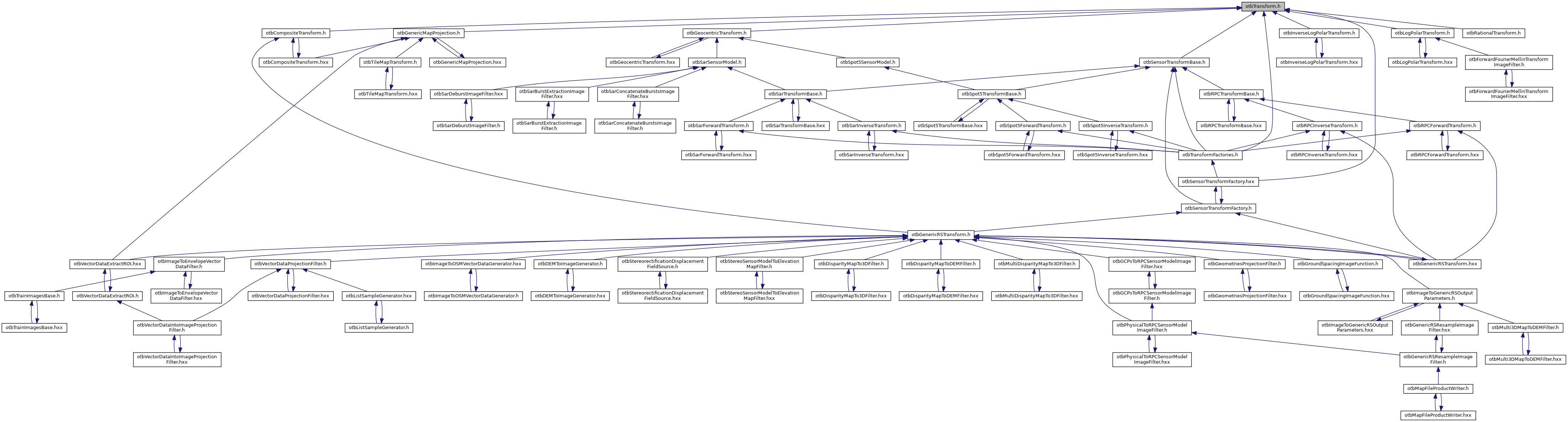 Include dependency graph for otbTransform.h: