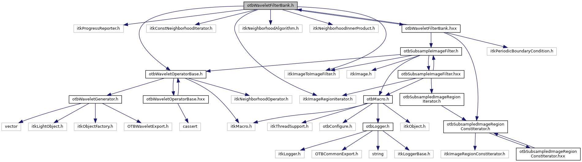 Include dependency graph for otbWaveletFilterBank.h:
