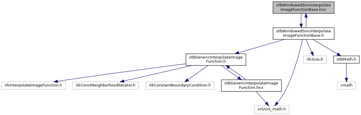 Include dependency graph for otbWindowedSincInterpolateImageFunctionBase.hxx: