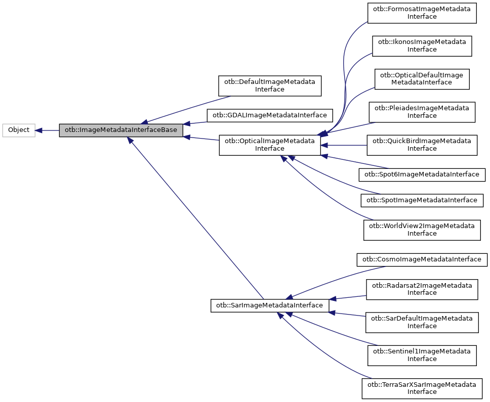 Reimplemented in otb::TerraSarXSarImageMetadataInterface, otb::SarImageMetadataInterface, otb::CosmoImageMetadataInterface, otb::DefaultImageMetadataInterface, otb::OpticalDefaultImageMetadataInterface, otb::SarDefaultImageMetadataInterface, otb::Sentinel1ImageMetadataInterface, otb::PleiadesImageMetadataInterface, otb::FormosatImageMetadataInterface, otb::OpticalImageMetadataInterface, otb::Radarsat2ImageMetadataInterface, otb::Spot6ImageMetadataInterface, otb::SpotImageMetadataInterface, otb::IkonosImageMetadataInterface, otb::QuickBirdImageMetadataInterface, otb::WorldView2ImageMetadataInterface, and otb::GDALImageMetadataInterface.