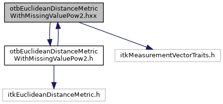 Include dependency graph for otbEuclideanDistanceMetricWithMissingValuePow2.hxx: