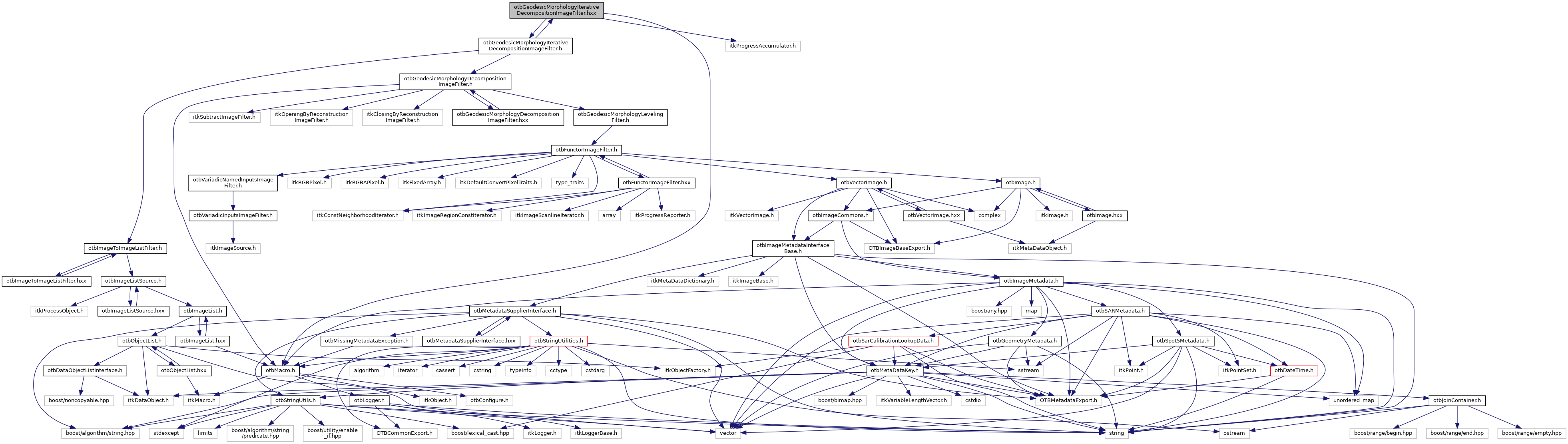 Include dependency graph for otbGeodesicMorphologyIterativeDecompositionImageFilter.hxx: