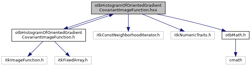 Include dependency graph for otbHistogramOfOrientedGradientCovariantImageFunction.hxx: