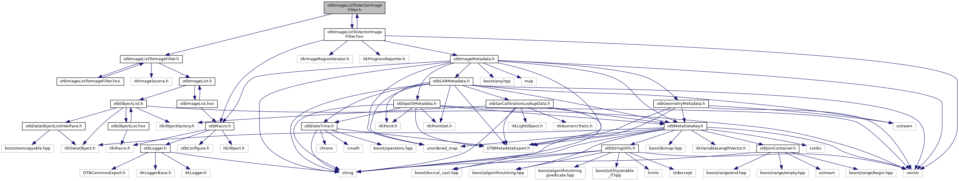 Include dependency graph for otbImageListToVectorImageFilter.h: