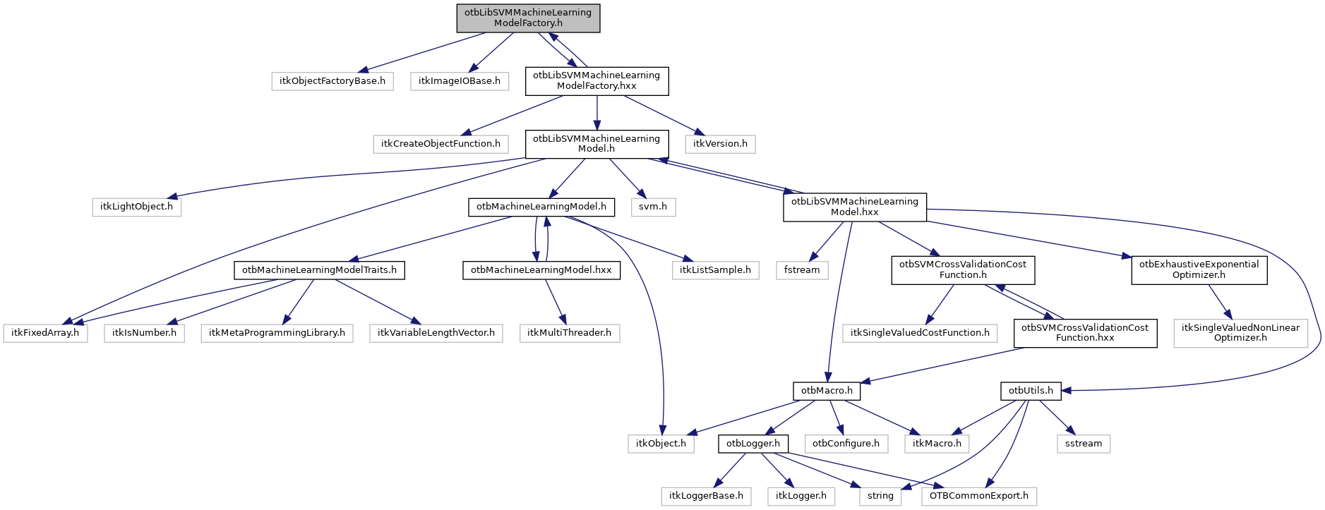 Include dependency graph for otbLibSVMMachineLearningModelFactory.h: