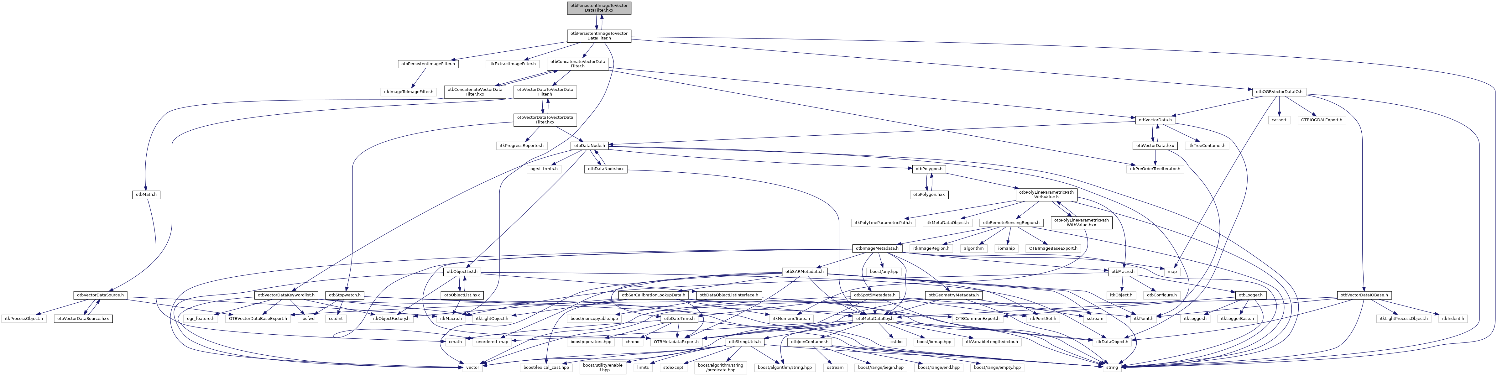 Include dependency graph for otbPersistentImageToVectorDataFilter.hxx: