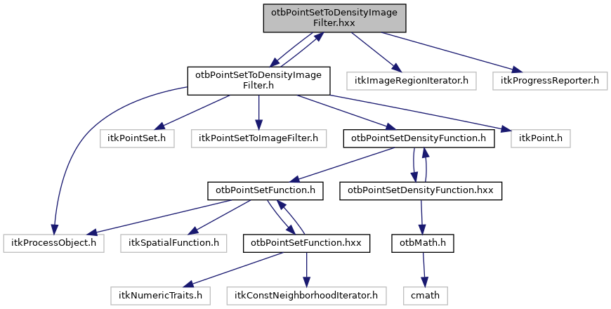 Include dependency graph for otbPointSetToDensityImageFilter.hxx: