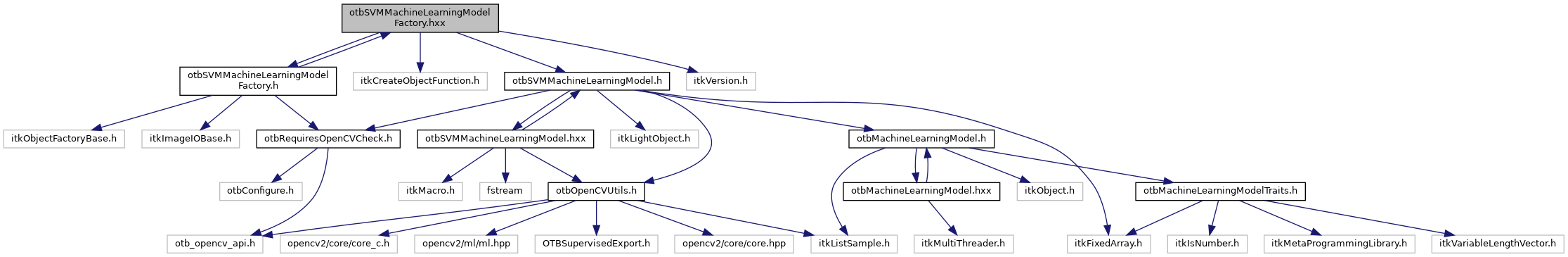 Include dependency graph for otbSVMMachineLearningModelFactory.hxx: