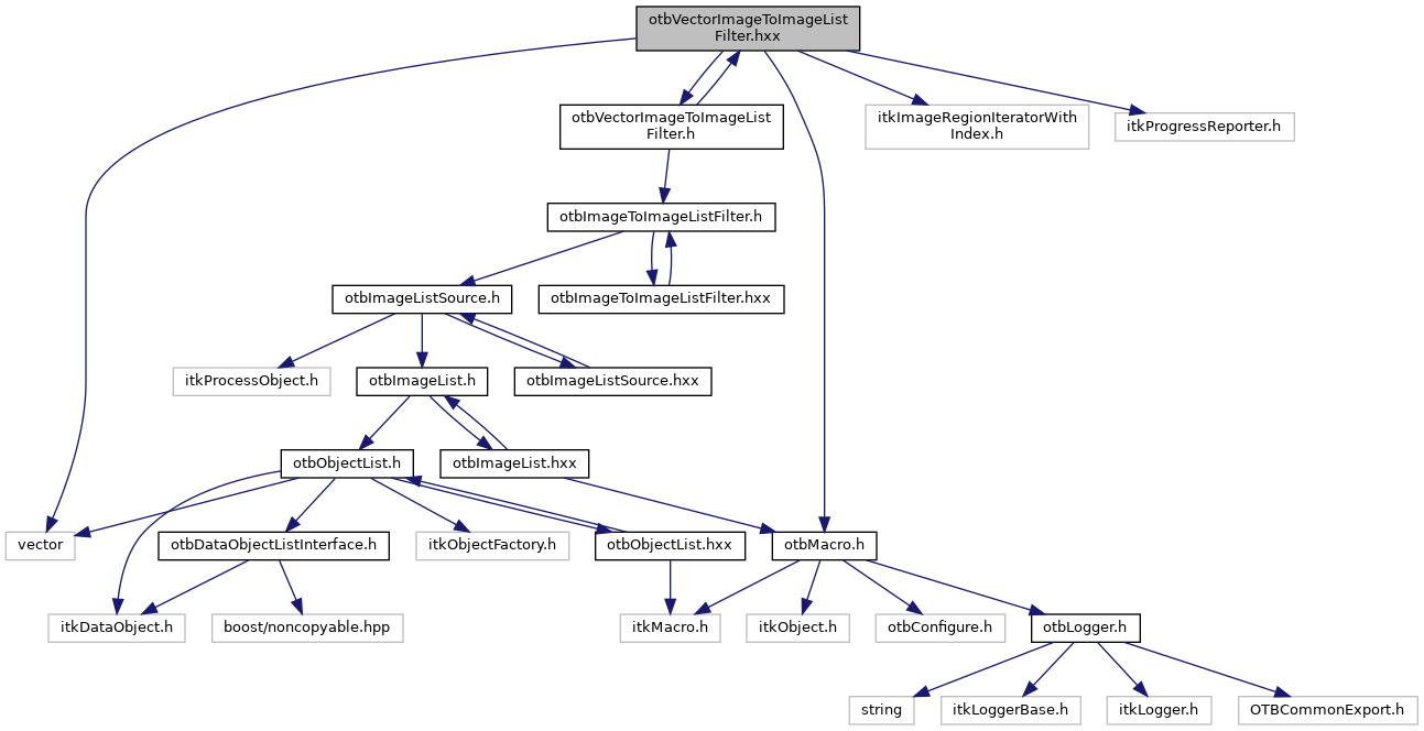 Include dependency graph for otbVectorImageToImageListFilter.hxx: