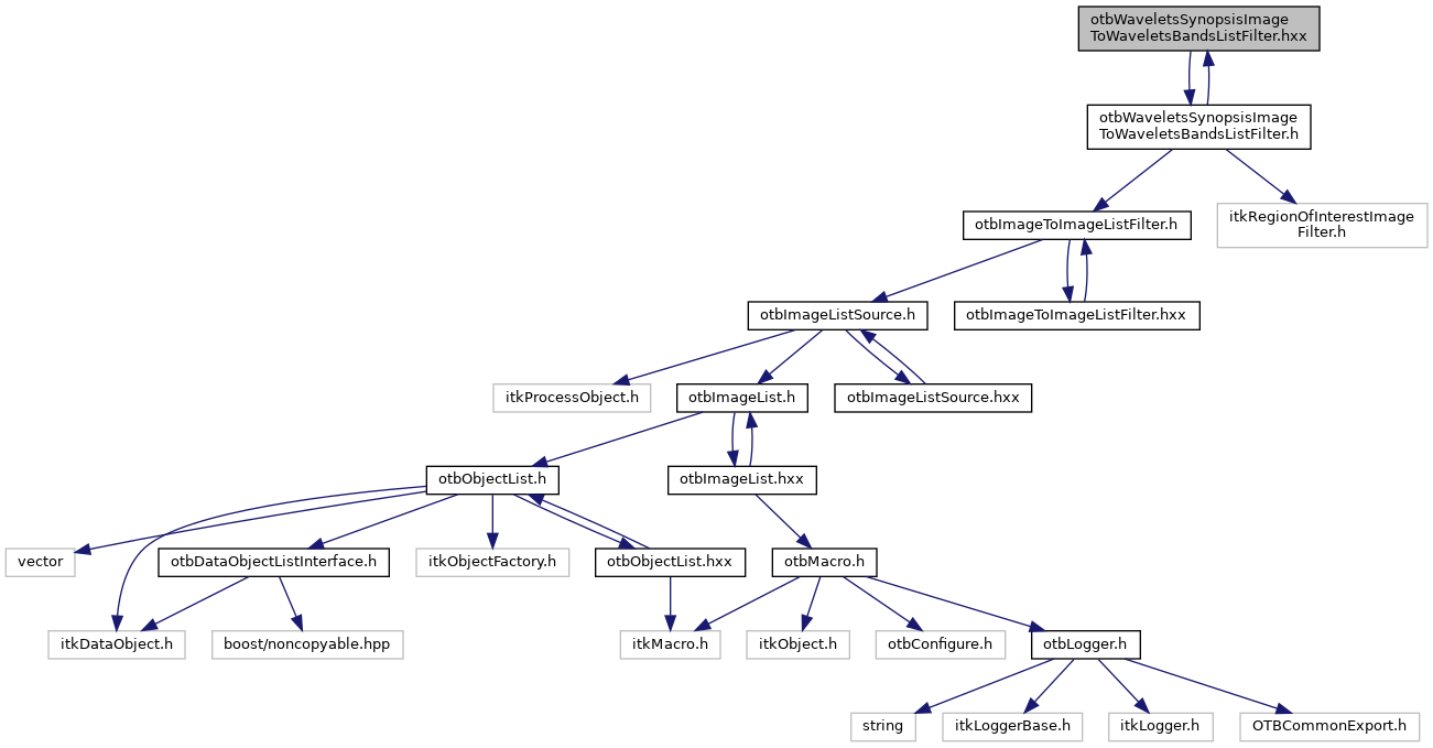 Include dependency graph for otbWaveletsSynopsisImageToWaveletsBandsListFilter.hxx: